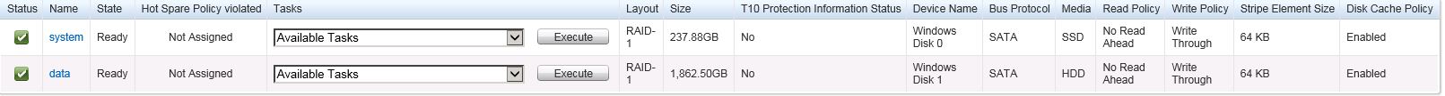 А посмотреть "внутрь" рейд-группы - из чего она состоит? Просто ладно если "они" обозвали "зеркало" (R1) как R10 (хотя это бардак и злостное пренебрежение отраслевыми соглашениями), но если контроллер по-умолчанию норовит раскатать два харда в R10 из их "половинок", то это реально уже ни в какие ворота не лезет.ADMT писал(а):Средняя нагрузка на процессор 30-40% по ядрам тоже примерно такой же расклад, памяти съедает только 30Gb из 64. Рейд 10 сделал сам контроллер (у него просто нету выбора RAID1, только RAID10 или 5 или 6 или 0).