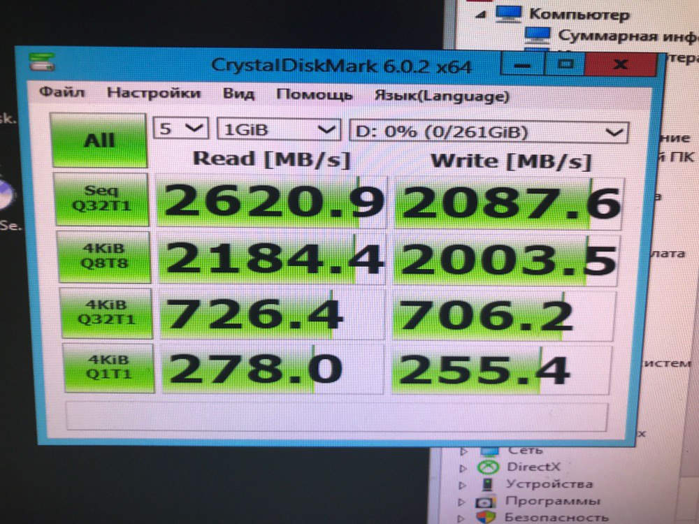Поставил виндовс windows server 2012 на жесткий диск. Проверил скорость SSD показатели отличные