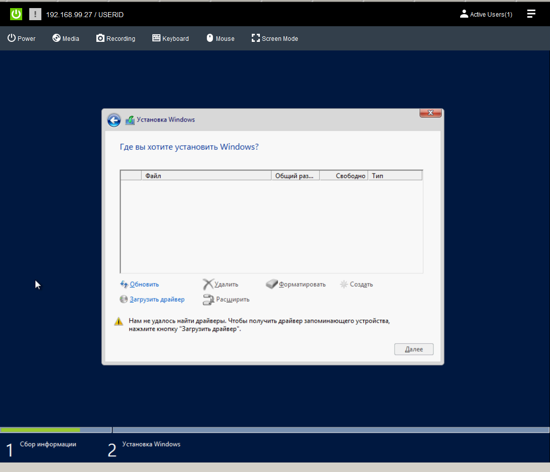 Через менеджер сервера (BMC) создал два RAID.
