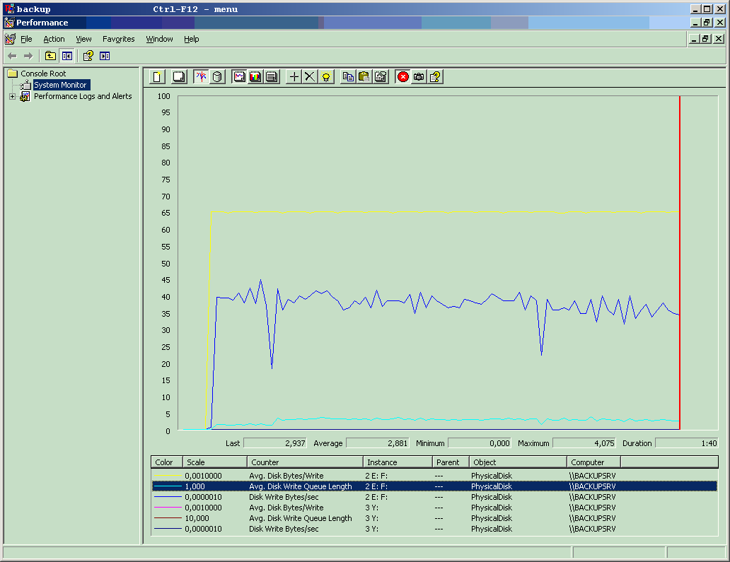 Тесты Iometer (S1A1 и S3A1 на последовательное чтение, S2A1 - последовательную запись) демонстрируют очень понятные и адекватные оборудованию цифры. Конкретные цифры, если будет надо приведу позже. По ним ресурсов у дисковой системы достаточно для обеспечения желаемой скорости передачи данных.
