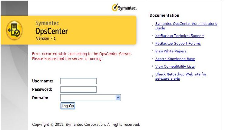Нужна помощь. После установки Netbackup-a при попытке зайти в управляющий вэб-интерфейс получаем следующее сообщение об ошибке: