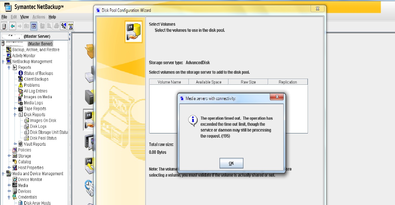 При попытки создатьDisk Pool вылезает следующая ошибка:
