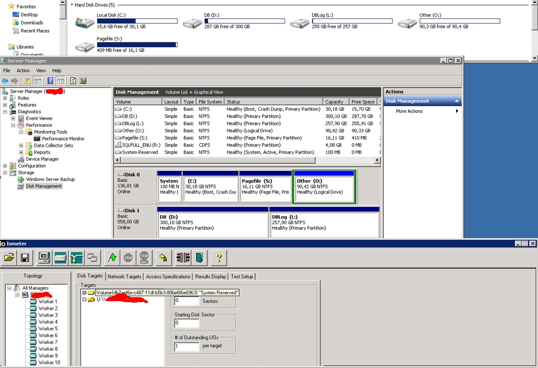 В disk management удалил раздел Other, запускаю iometer, а он всё равное не видит новый сырой раздел. Только маленький системный...gs писал(а):Непонятно, почему он видит сырой диск, если на нем есть партиции.
