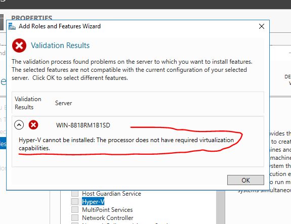 Всё правильно, но даже на хосте с 2012R2 процессор должен показывать, что есть поддержка EPT.Tert писал(а): А кто вам сказал, что в таком режиме все должно работать?