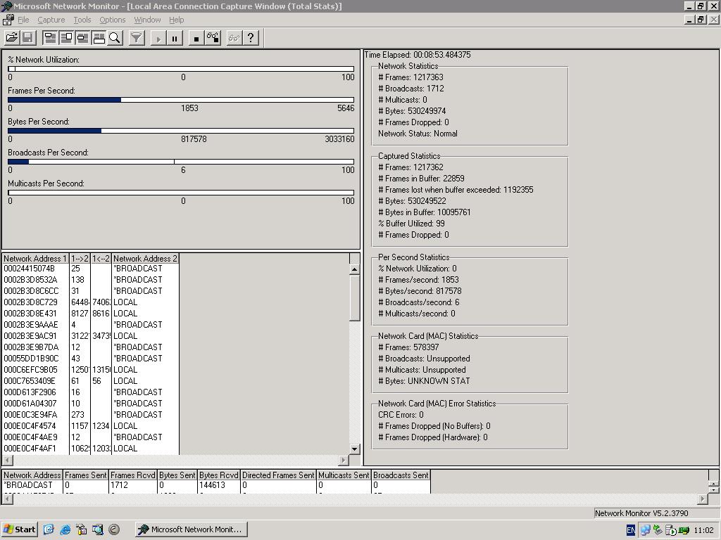 Последите за этим параметром, важны пики, насколько они будут частыми. И еще один параметр, Buffer Utilized, он где-то справа. Перед этим поставьте размер буфера метров 10-ть.Sergey Petrov писал(а):Сейчас %Network Utilization = 1, Network Card (MAC) Error statistics все по нулям.