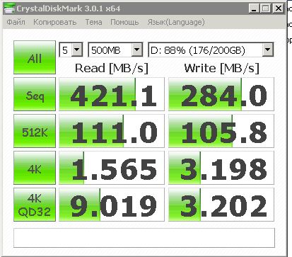 А попробуйте помолотить его каким-нть тестом на запись, интересно, сколько покажет? Может есть аппаратная проблема..