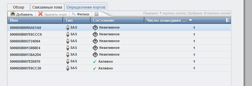 две недели назад подключил к массиву два сервера (по одному линку каждый сервер) порты в списке хоста в состоянии "неактивное", тогда долго прыгал и так и не понял почему - перегрузил массив и линки стали активными