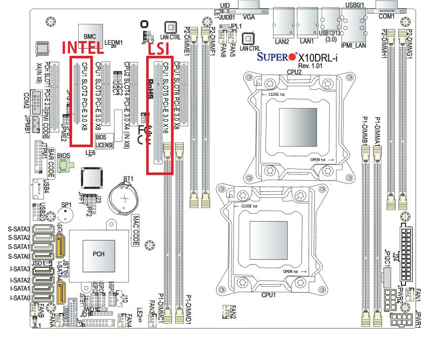Для исключения перегрева разнесли подальше LSI 9361-8i и intel 520da2, правда для этого пришлось LSI поставить в x16 слот - температура под нагрузкой была от 50 до 60С, после тестов (копирование внутри массива RAID6 и через сеть около 20ТБ) решили, что проблема ушла и был перегрев, но через 2 месяца проблема повторилась опять.
