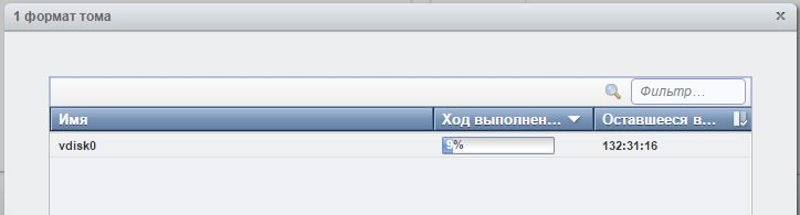Это фоновая инициализация. До окончания будет тормозить.[/quote]Еще момент. Это нормально, что формат тома висит так долго? При этом том уже подключен со стороны сервера и работоспособен.