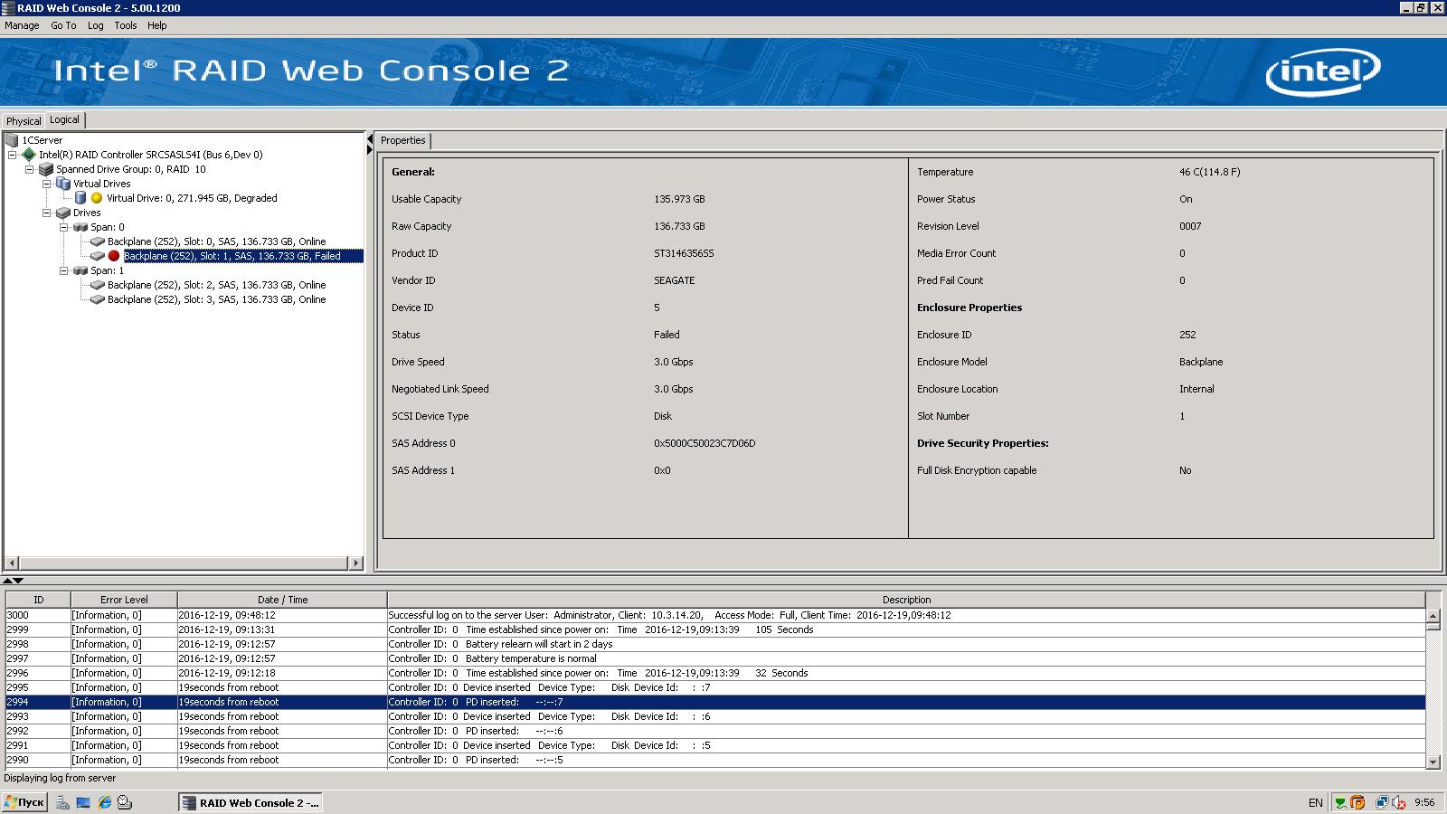 Re: контроллер srcsasls4i замена диска