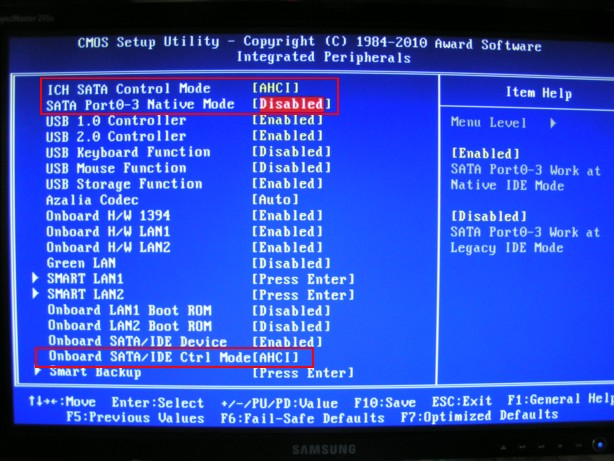 Прочитал в факе: Параметр "SATA Port 0-3 Native Mode" желательно включить. Это даст возможность использовать все спецификации SATA, в т.ч. eSATA при включённом AHCI.