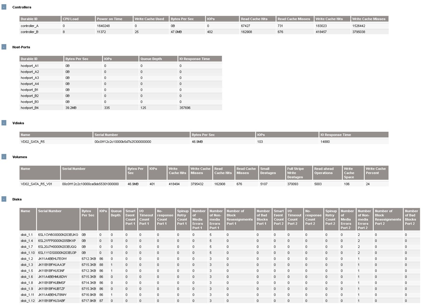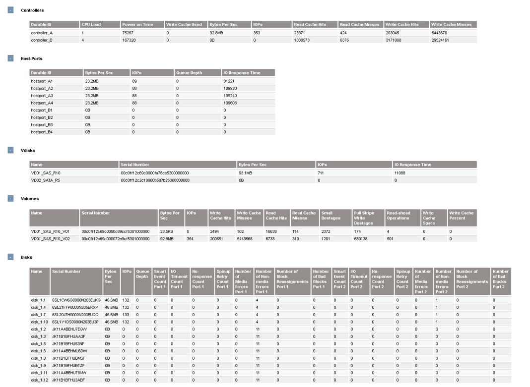 смотрю командой show vdisk-statistics <Disk Name>