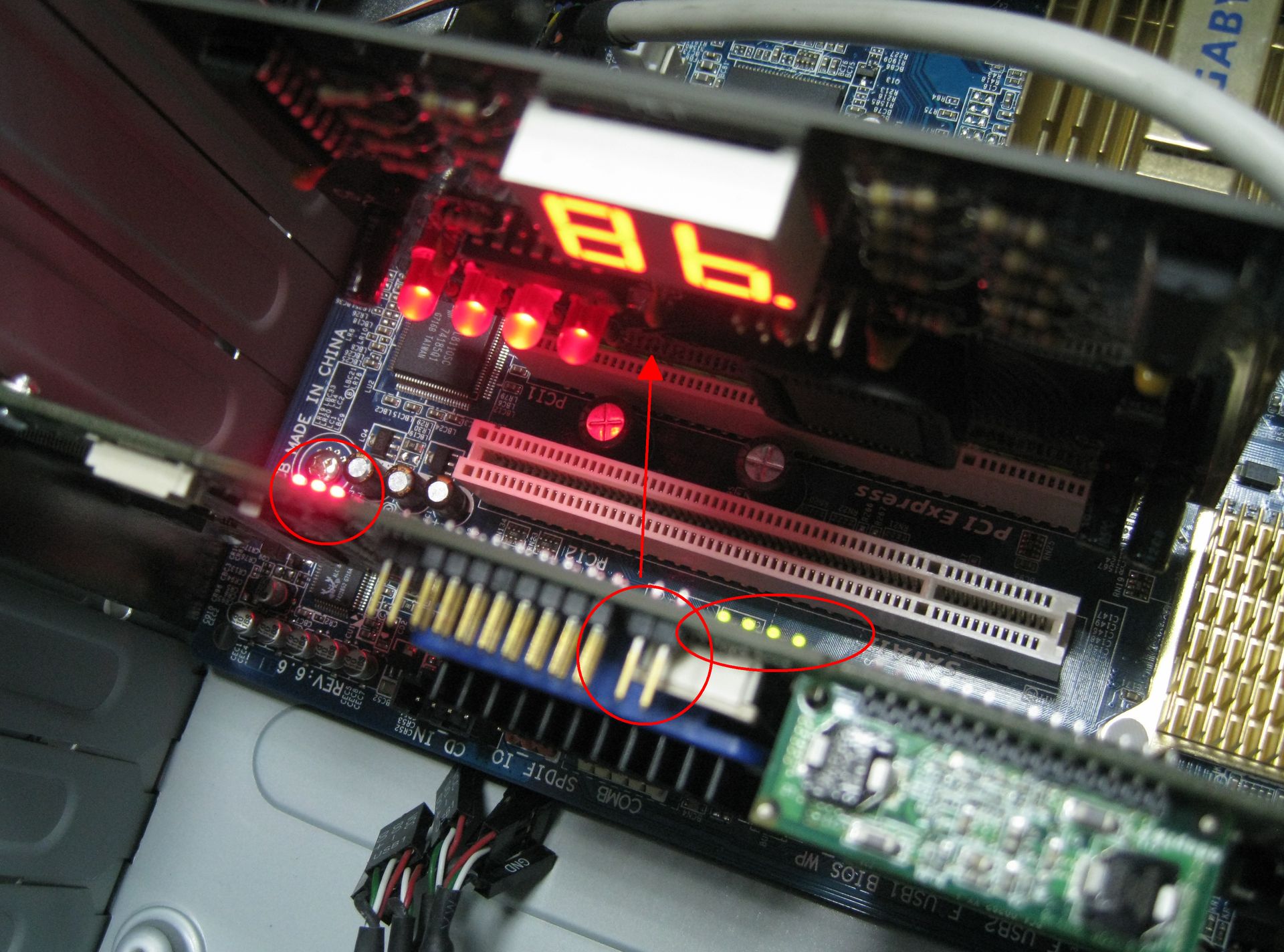 Прошить без flash 0 невозможно, т.к. дальше биоса компьютер не загружается, висит наглухо (num lock не работает, ctrl-alt-delete не работает). См. фото - с перемычкой flash 0 компьютер загружается - post-карта показывает FF - можно грузить DOS и прошивать, а без flash 0 - post-код 86 и глухо висит. Материнка Gigabyte ga945gcmx-s2 с последним bios, на ней есть отдельный слот pci-e 8x, блок питания inwin. Пробовал на других матерях в разных pci-e слотах - то же результат - не грузятся, никакой информации от контроллера не показывают, ami-bios выдаёт post-код 0078.