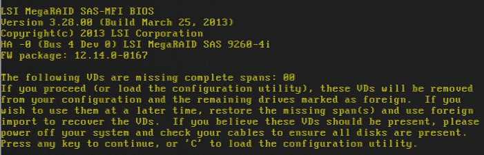 После этого контроллер пишет: Захожу в webbios - 2 диска в состоянии unconf good, 2 диска - foreign unconf good: При сканировании дисков - находит старую конфигурацию, при попытке импорта пишет что невозможно импортировать: Перед заменой диска была сохранена конфигурация через Storage manager.