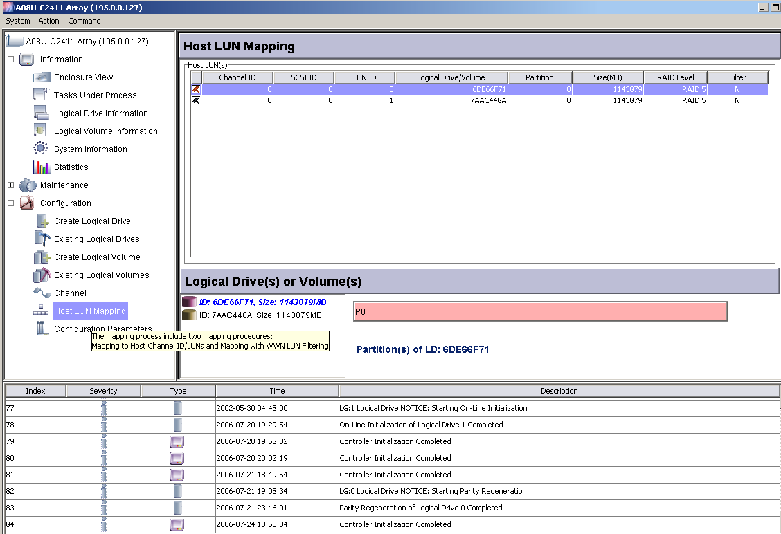 выложите пожалуйста скришот окна с Host LUN Mapping.