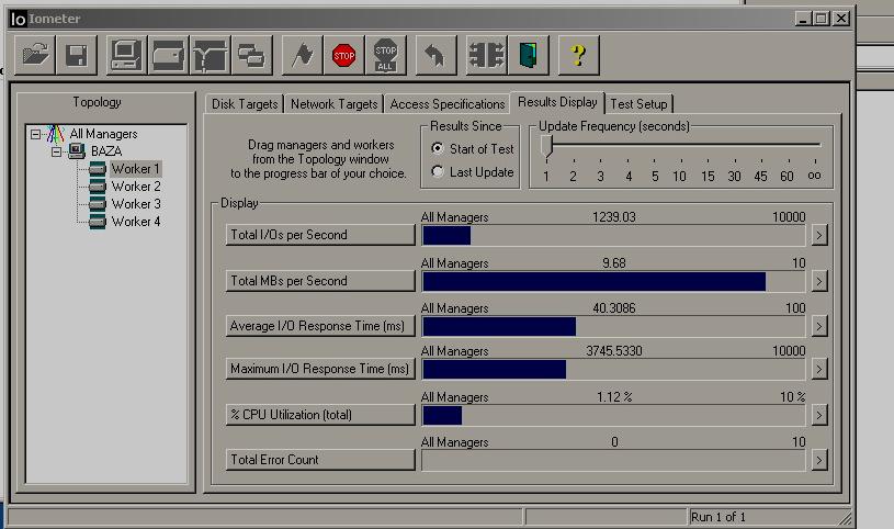 Привожу скрин теста масива из 8x73Г 15К винтов SCSI.
