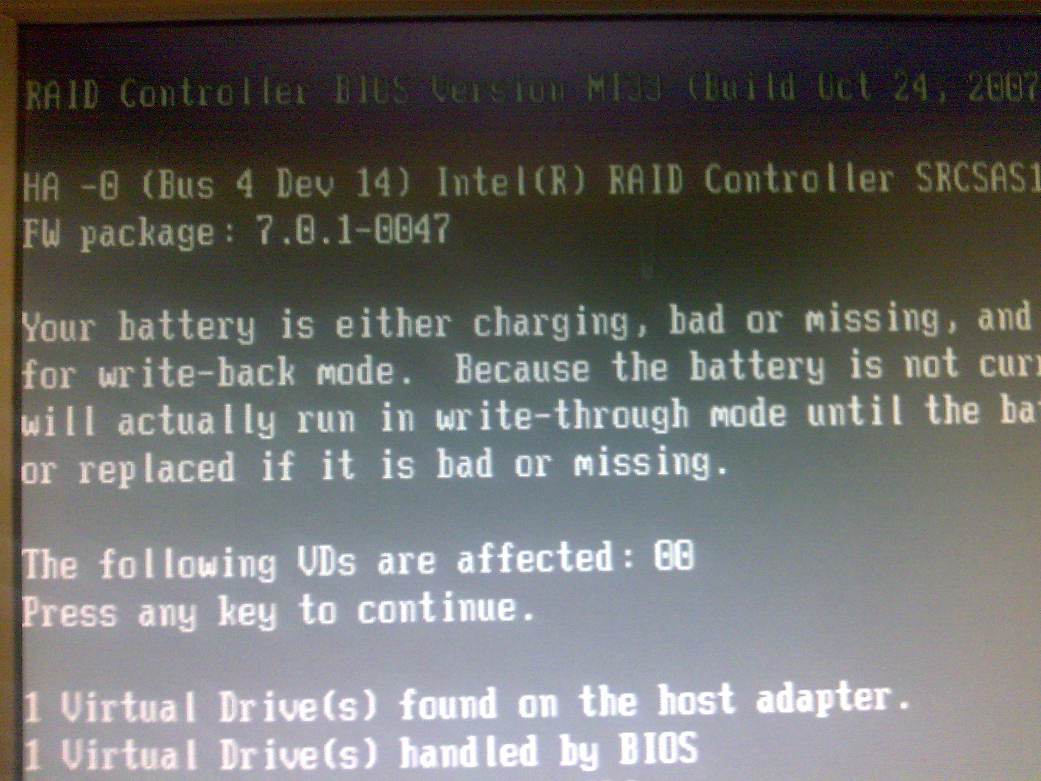 Включили, сервер в порядке но контроллер пишет про BBU- см. картинку