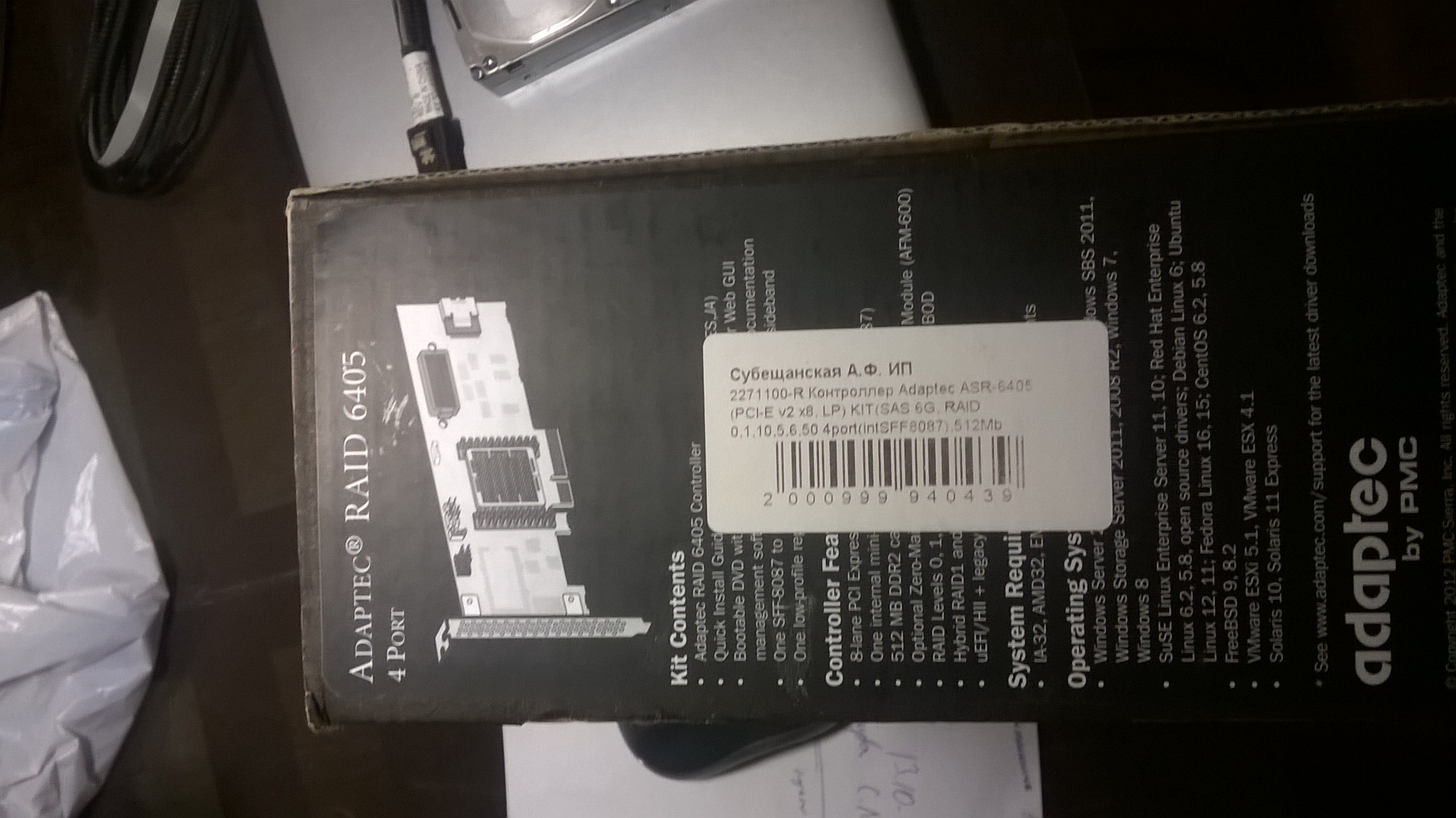 Здравствуйте. Столкнулся с проблемой, давно покупали raid контроллер adaptec и 2 sas диска Hitachi 15k. Дошли руки для модернизации, но в комплекте с адаптером кабель только для data дисков. Подскажите лучше купить другой кабель для sas или можно использовать какие то переходники? Заранее благодарен за ответ.
