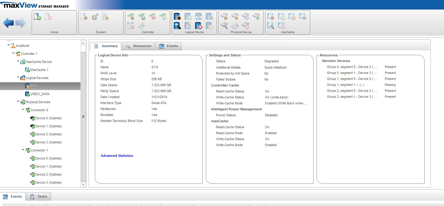 Re: Массив (Adaptec ASR7805Q) в непонятном для меня состояни