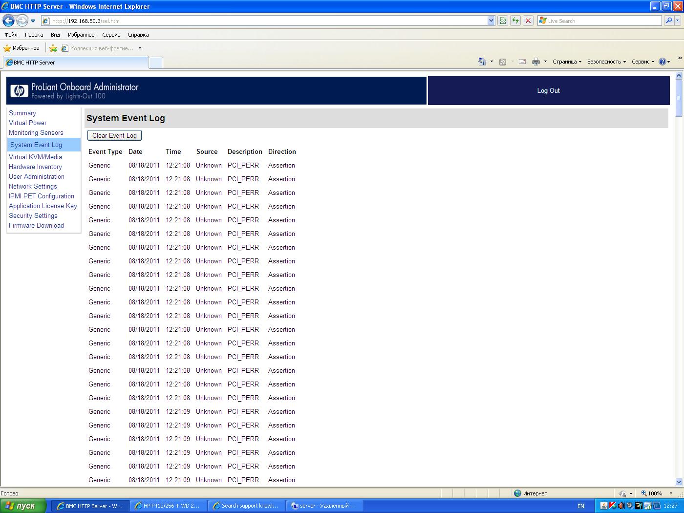 Имеется HP DL160G5, P410 и 4х500гб hdd. На первый взгляд контроллер работает нормально, в настройки заходит массив создается. Но ни Array Configuration Utility ни ОС не видит контроллера. Биос и прошивку обновлял до последней, ставил наоборот самые старые, все логичные и нелогичные действия предпринимал. При установке контроллера в логах сыпятся ошибки pci_perr. Контроллер меняли по гарантии, не помогло.