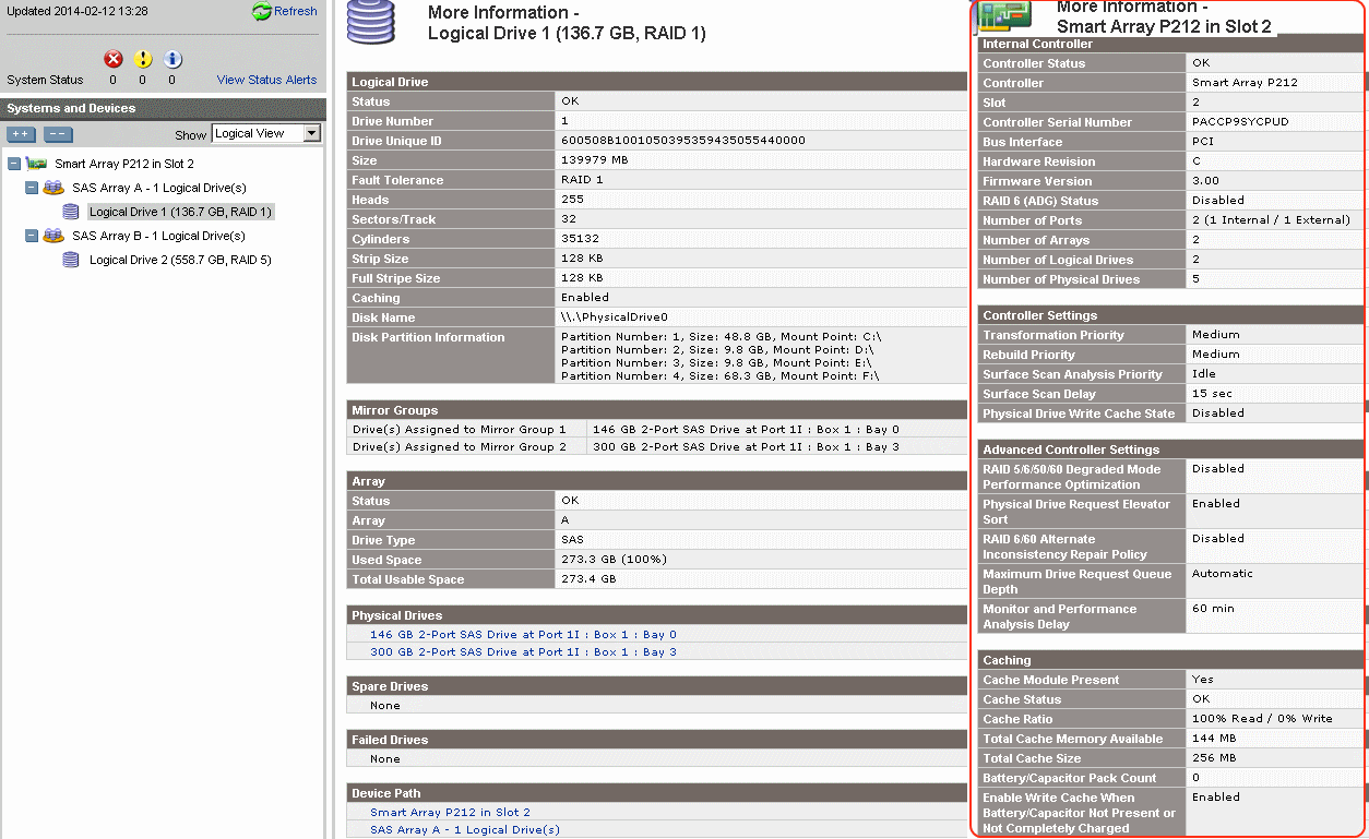 Re: Smart Array P212 горит индикатор неисправности на новом HDD