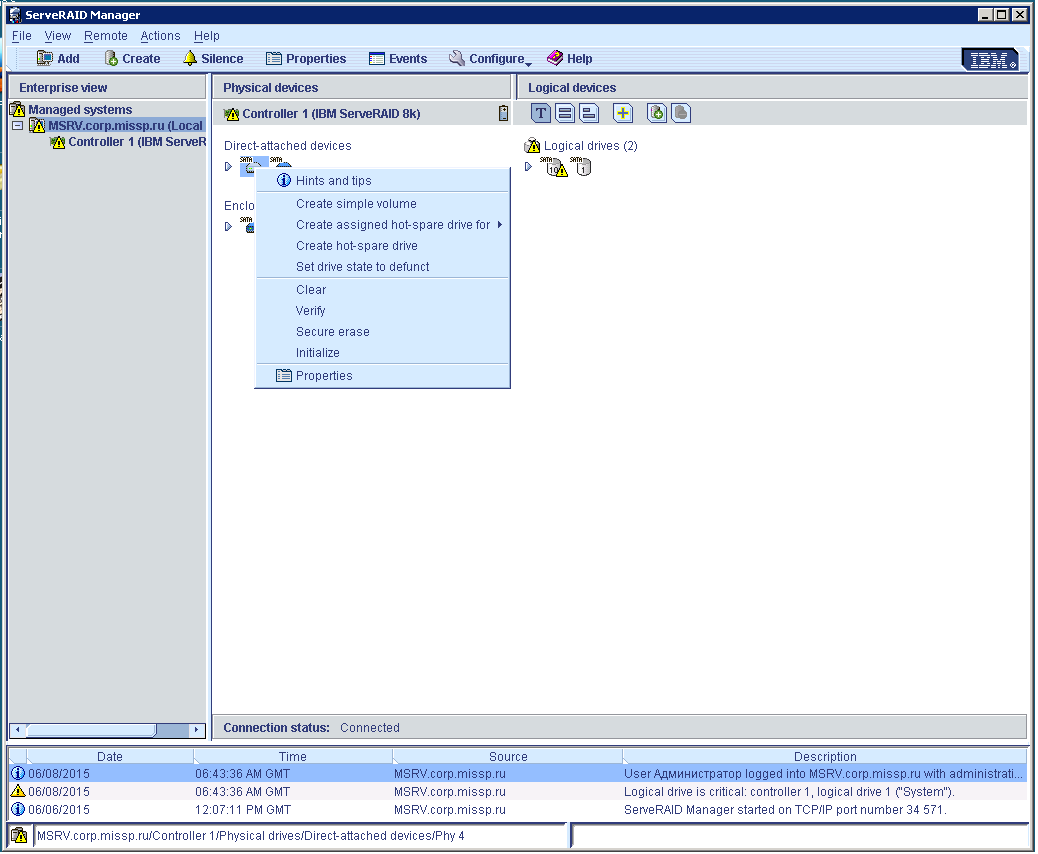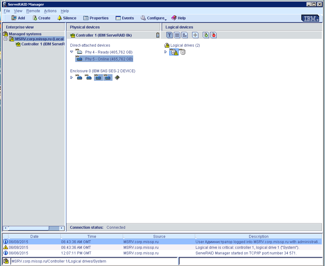 Re: Замена жесткого диска в Raid на IBM ServeRaid 8k
