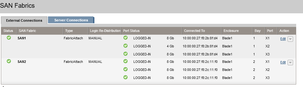 На VC FlexFabric на пяти из шести портов 8Gb, на одном 4Gb.
