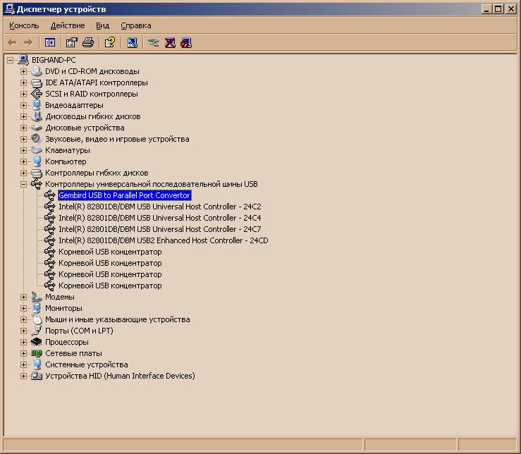 В комплекте к переходнику идут драйвера, драйвера этo набор файлов как правило *.sys *.drv (они вероятно запакованы в инсталлер) Посмотрите какие файлы на CD, какое устройство USB или LPT порт или что еще образуется после установки драйверов с CD.