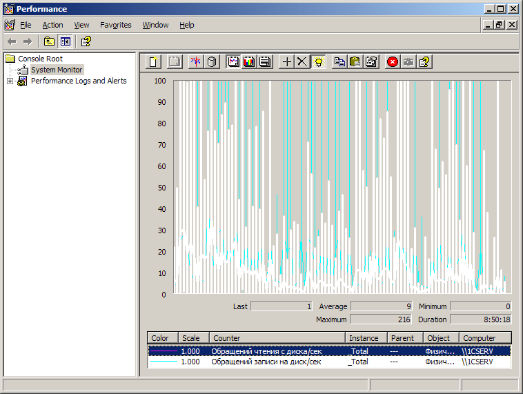 Perfmon серьезно нагруженного RAID1 из 2х10k rpm U320 винтов