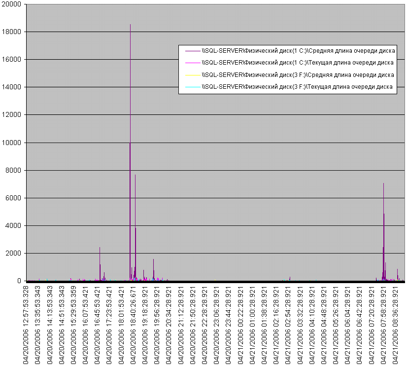 - Average Queue Length/sec по отдельности для массива под данные, логи и - я правильно понял, что у Вас tempdb лежит на системном зеркале ?