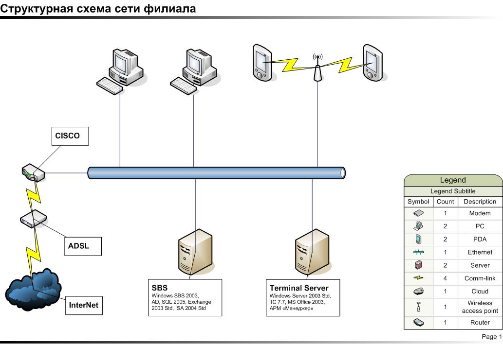 - Схема сети филиала
