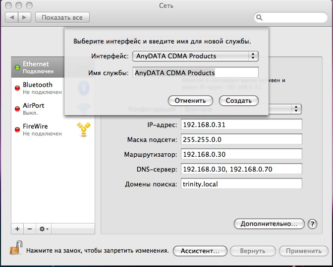 работать SkyLink CDMA USB modem AnyData ADU 310A на новой операционке от Apple  - Mac OS X 10.5 Leopard