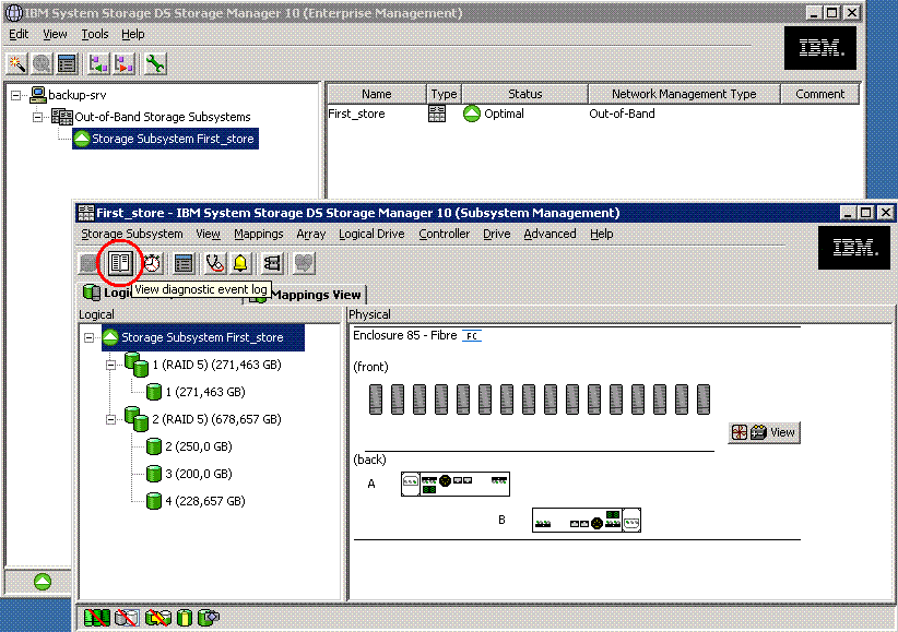 По идее, чтобы накатить другую прошивку мне сначала нужно почистить лог ошибок на самом хранилище, а для этого мне нужно к нему подключиться с помощью IBM DS Storage Manager